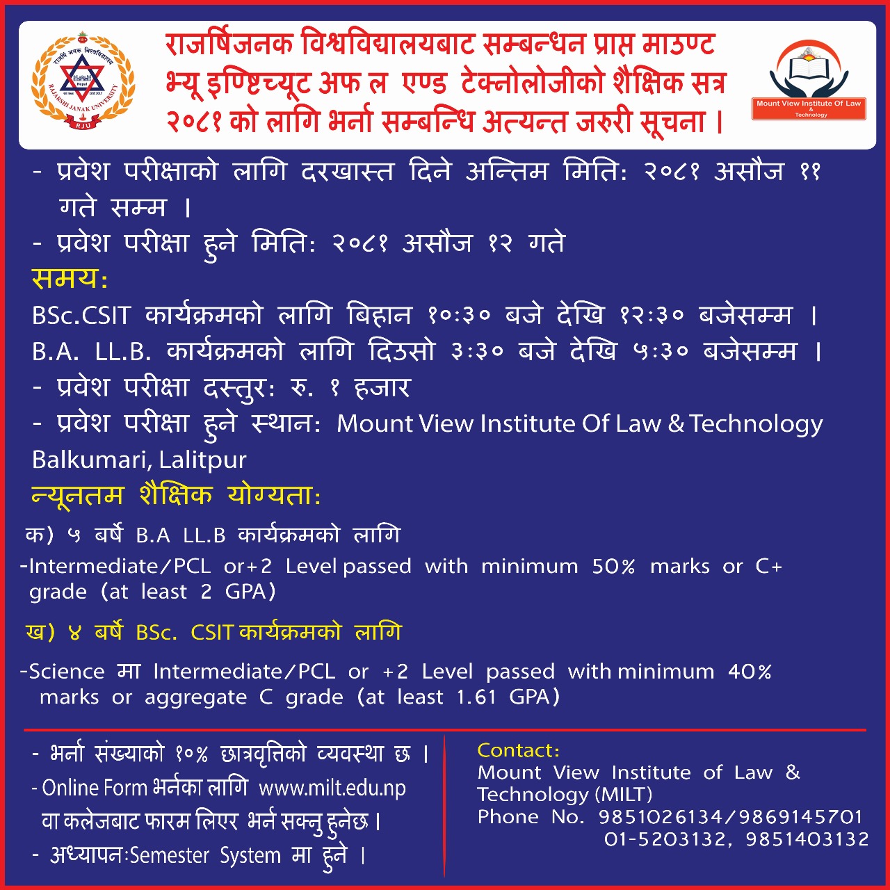 Finally, I urge all potential students, their parents and national academics to join hand in this noble endeavor of “building nation with our own human resources”. Wish you all have a wonderful experience in MILT